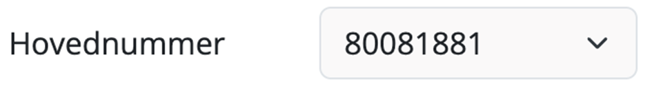 Du kan endre hovednummeret ved å velge et annet av bedriftens telefonnummer som er tilgjengelig i nedtrekkslisten for hovednummer: